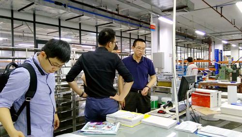 2018年4月12日,中國印刷技術(shù)研究院-數(shù)字印刷事業(yè)部總經(jīng)理郭春濤一行四人來訪天意有福,在副總經(jīng)理董祖明的帶領(lǐng)下參觀了天意有福生產(chǎn)中心。隨后進入會議室,雙方就數(shù)字印刷技術(shù)發(fā)展與行業(yè)合作展開了深入的交流。